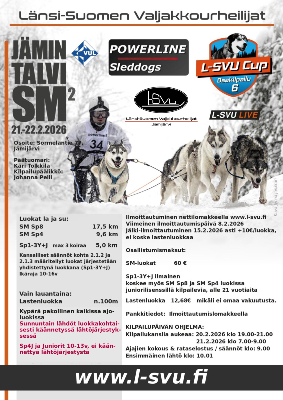 Race office is open on Saturday 7:00-9:00 and Friday 19:00-21:00, musher meeting on Saturday at 9:00 and first start 10:01 AM